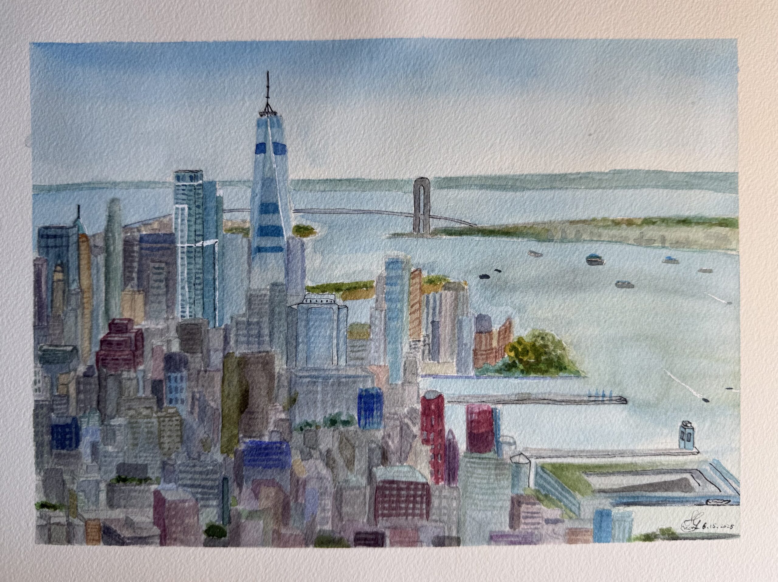 June 21, 2024 7:44 pmView of Manhattan from Brooklyn Heights, painted in May 2024 on a sunny day.