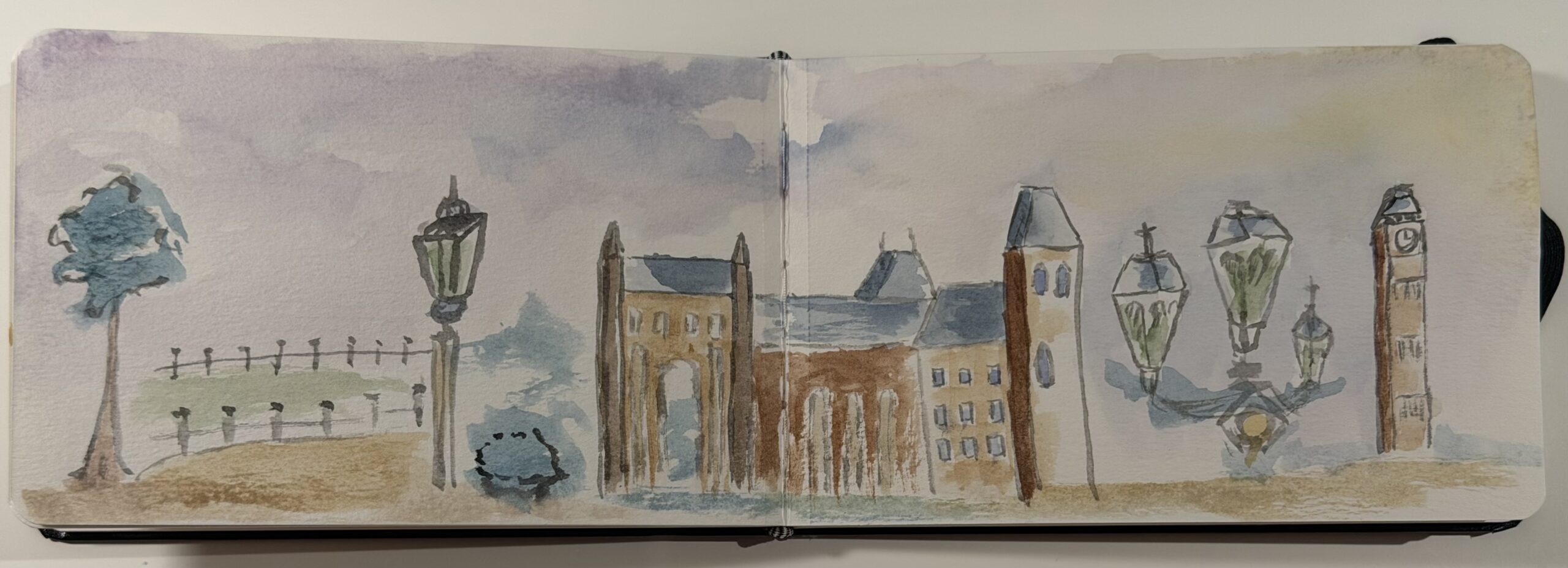View of Manhattan from Brooklyn Heights, painted in May 2024 on a sunny day.